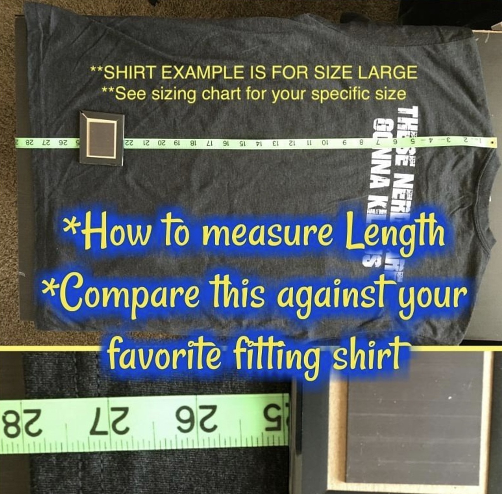 Please, PLEASE measure your favorite t-shirt at home and compare to make sure you're getting the correct size. I'm a one-man operation so I can't support returns and exchanges, thus I have to tell you the shirts are 'as-is.' That being said- feel free to get a hold of me if a mistake occurs, I'll work with you on getting you what you need!